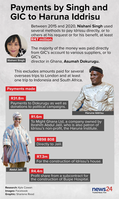 The Singhs, through GIC, also paid millions of rands in further payments to their local representative, Asumah Dokurugu, money that was earmarked for Haruna and other as yet unidentified officials.